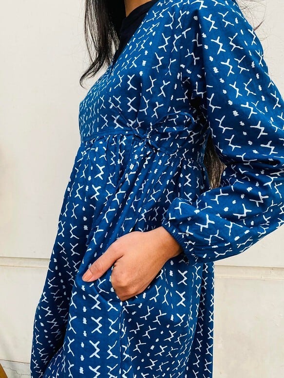 綺麗な青のコットン100%を利用して作った羽織です。