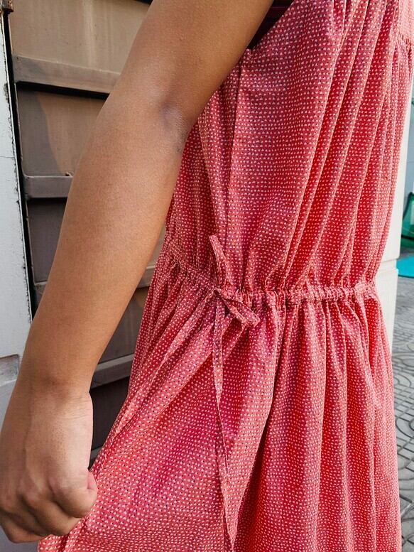 腰のリボンを絞って着用いただくこともできます。