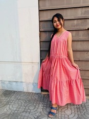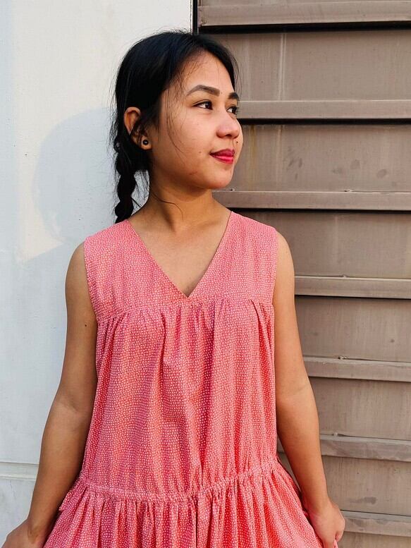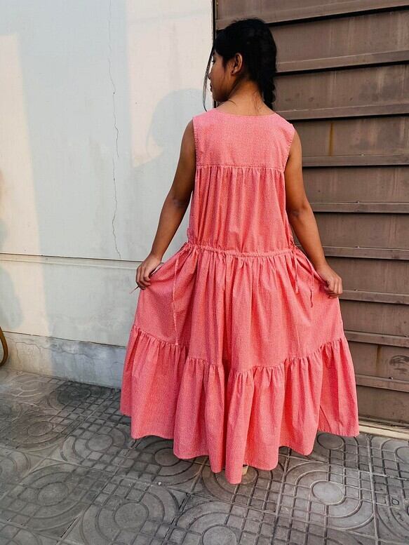 コットンVネックティアードワンピース