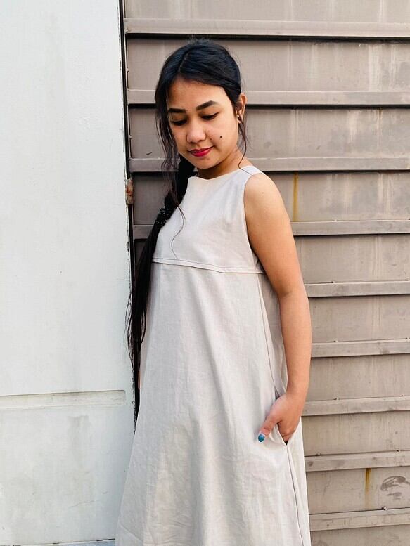 さらっと着れるハンドメイドのノースリーブ のワンピです。