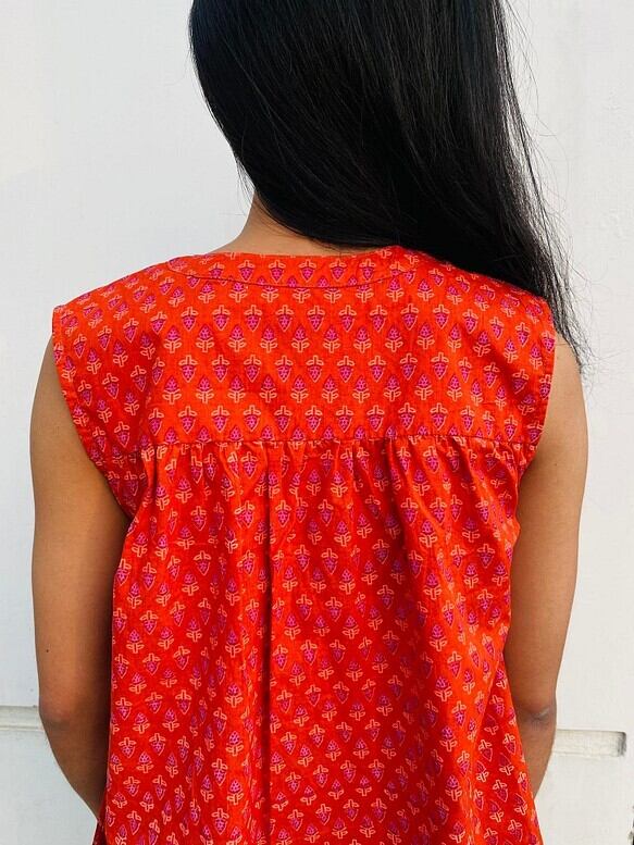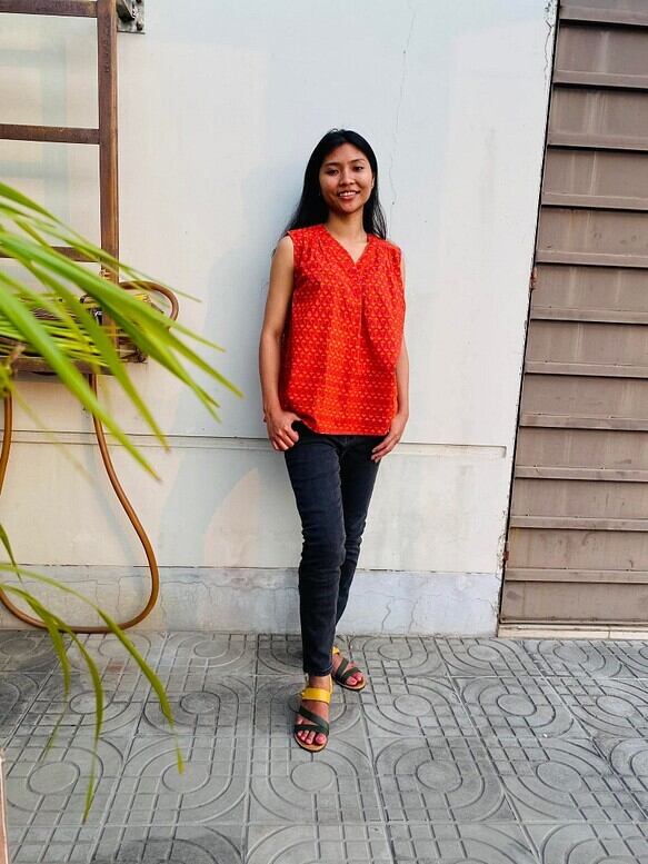 *弊社の取り扱っているインド綿は基本1ロール20M程度となっており、また多くの洋服が4-5M必要とするようなギャザーやタックが入っているもののため1つの柄布から4-5着しかお作りする事ができません。商品の販売を複数サイトで行っており、在庫の更新が間に合わなく同じタイミングで布の在庫以上の商品の購入を受けてしまう事があったり、布に落ちないシミが見つかったりして商品の縫製が出来ない事がございます。