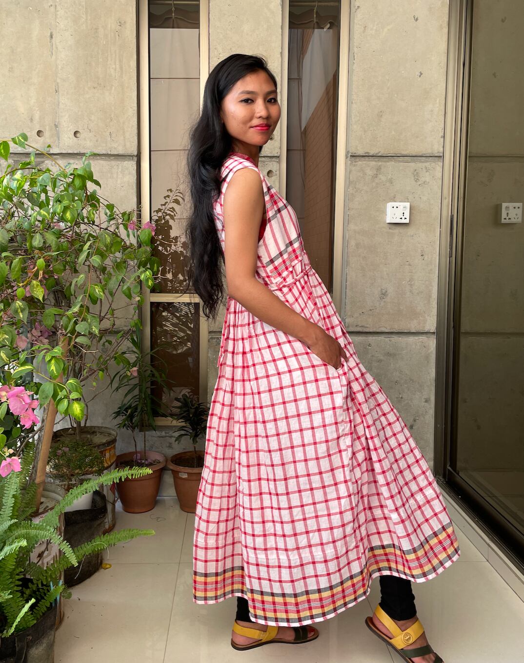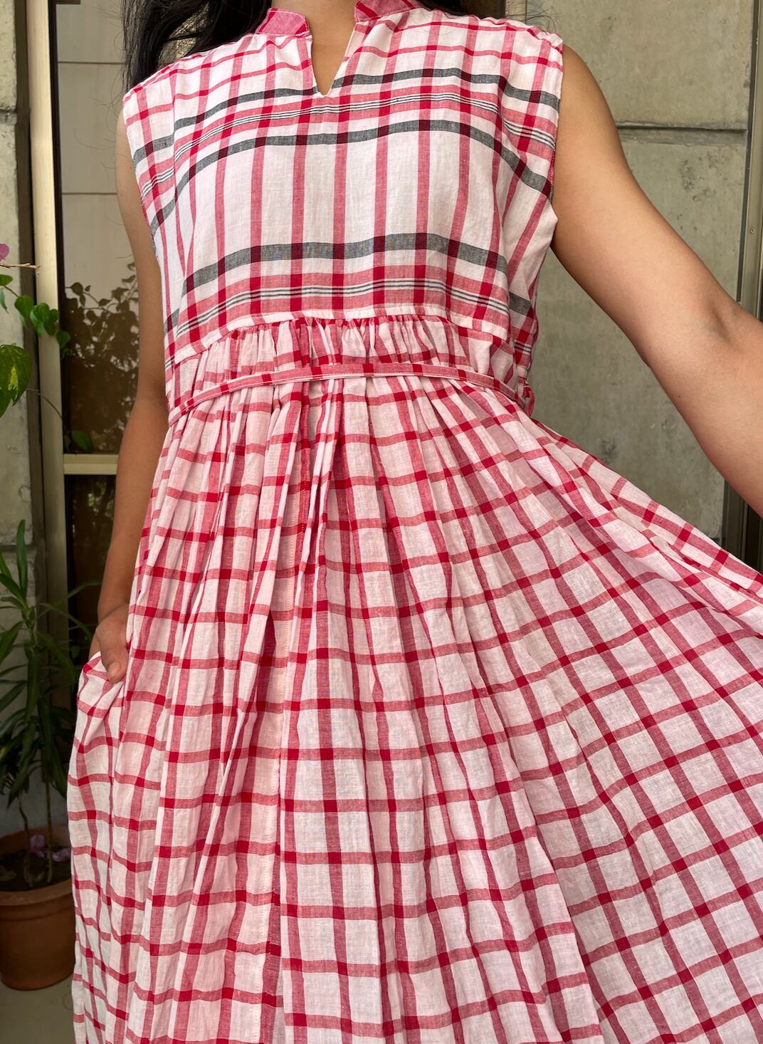 バングラデシュの手ぬぐい、ガムチャを使ったワンピースです。