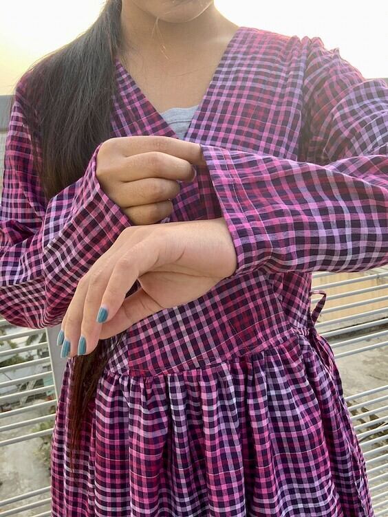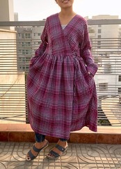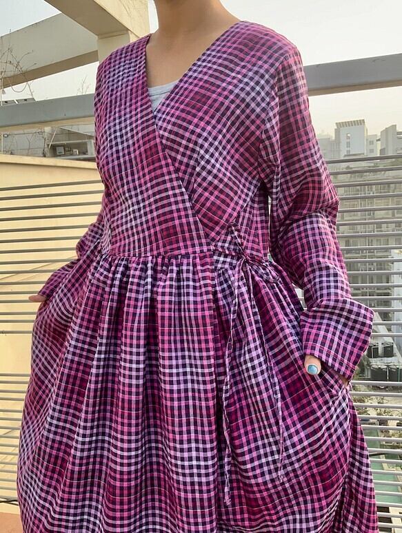 コットンカシュクールワンピース(羽織)インド産のチェック柄