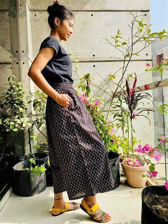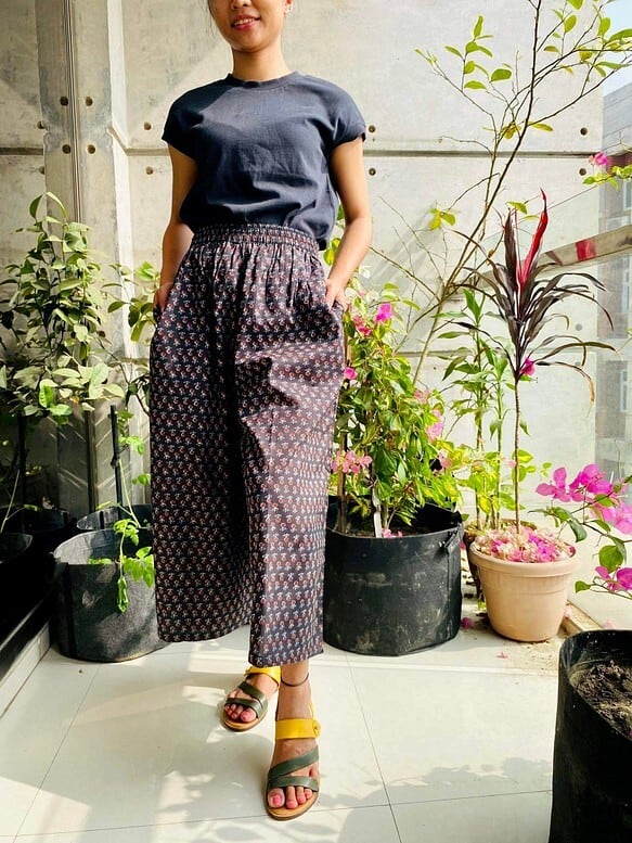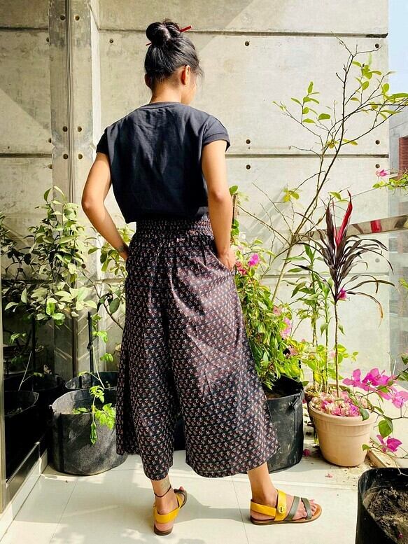 北インドのジョイプールコットン(インド綿)生地で楽チンに履いていただけるけどキレイに見えるワイドパンツを作りました!