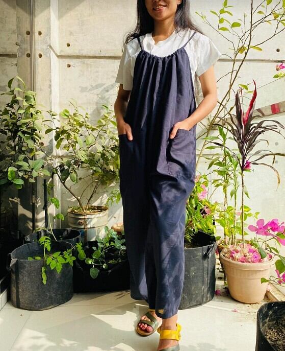 北インドのジョイプールコットン(インド綿)生地で楽チンに涼しく穿いていただけるサロペットをつくりました!