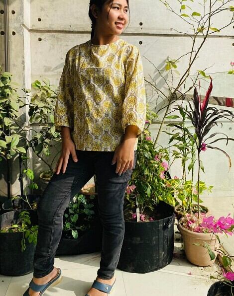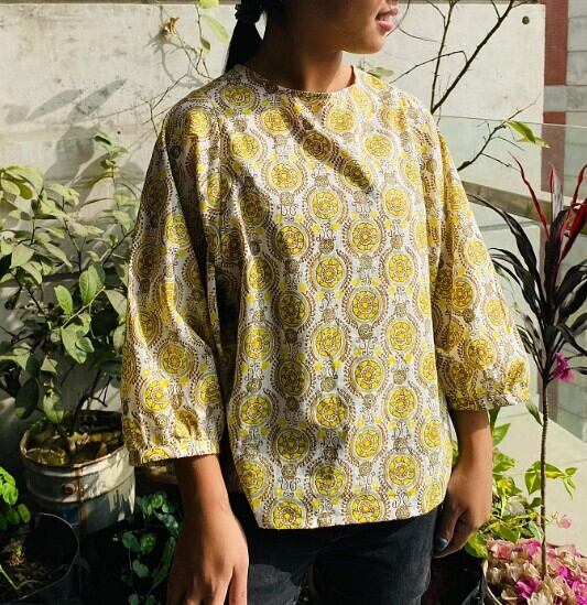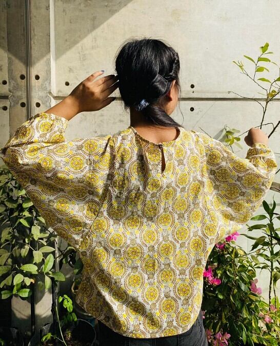 7部丈バルーンスリーブトップス(インド綿)