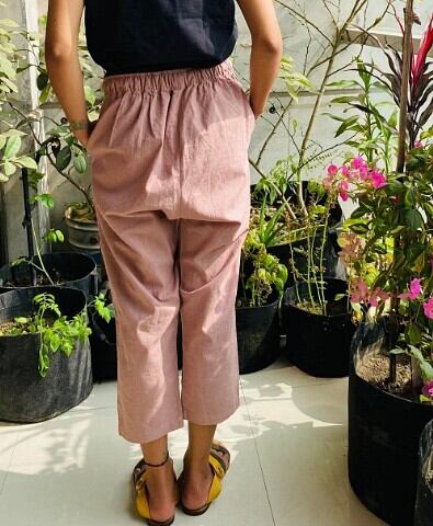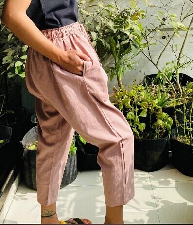 履きやすくて、もったりしすぎない、シルエットにこだわったサルエルパンツをおつくりしました。