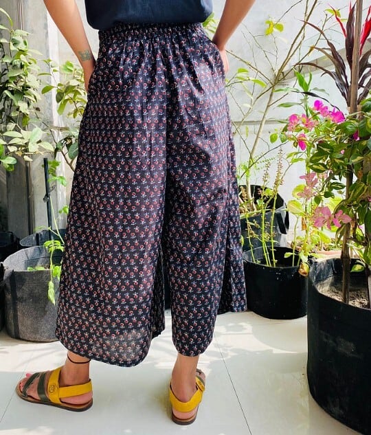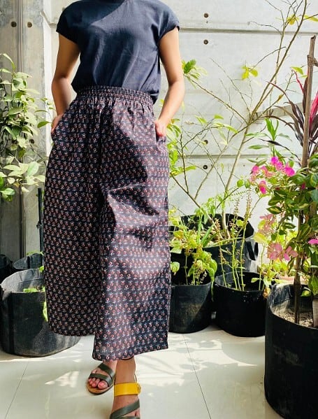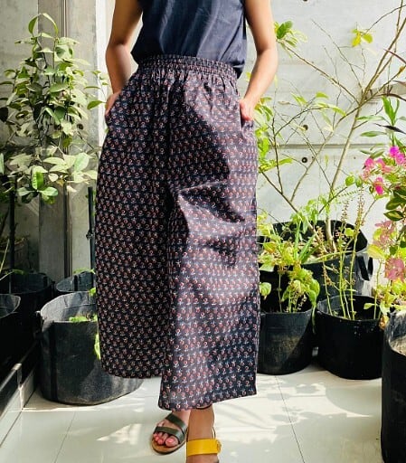 北インドのジョイプールコットン(インド綿)生地で楽チンに履いていただけるけどキレイに見えるワイドパンツを作りました!