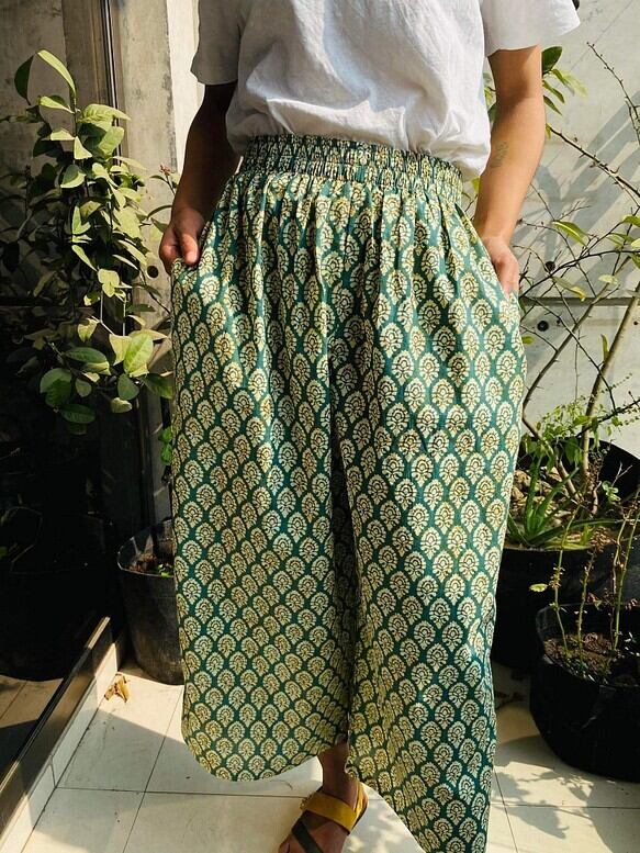 北インドのジョイプールコットン(インド綿)生地で楽チンに履いていただけるけどキレイに見えるワイドパンツを作りました!