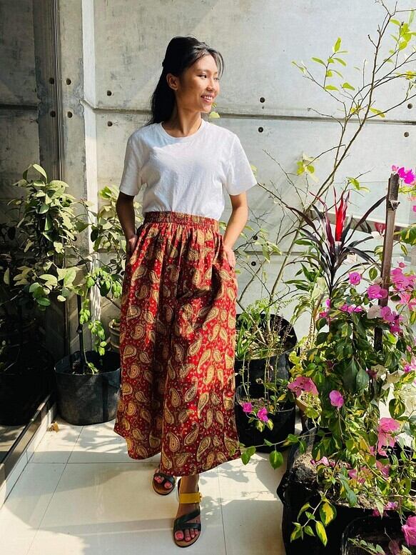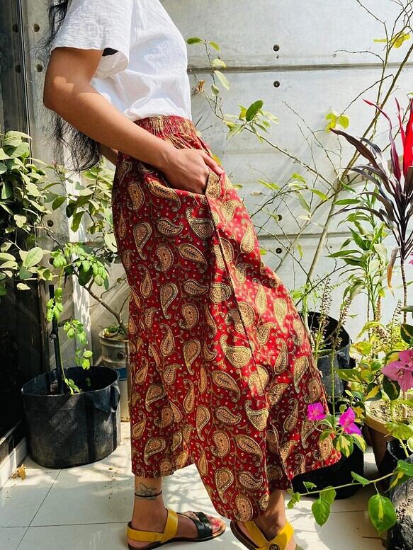 北インドのジョイプールコットン(インド綿)生地で楽チンに履いていただけるけどキレイに見えるワイドパンツを作りました!