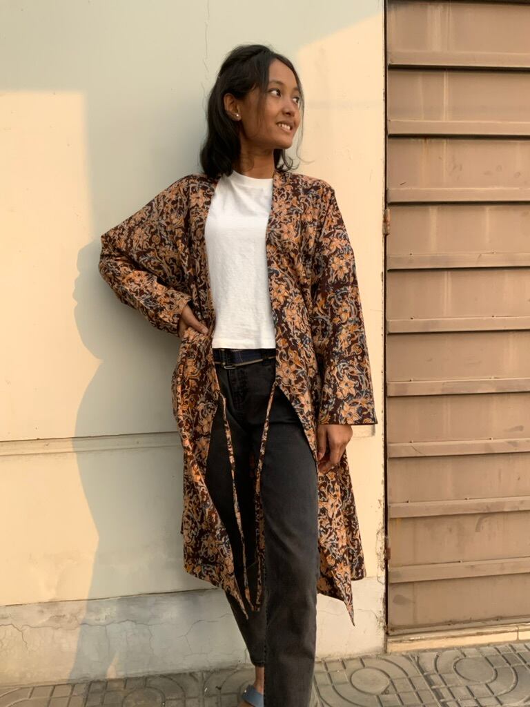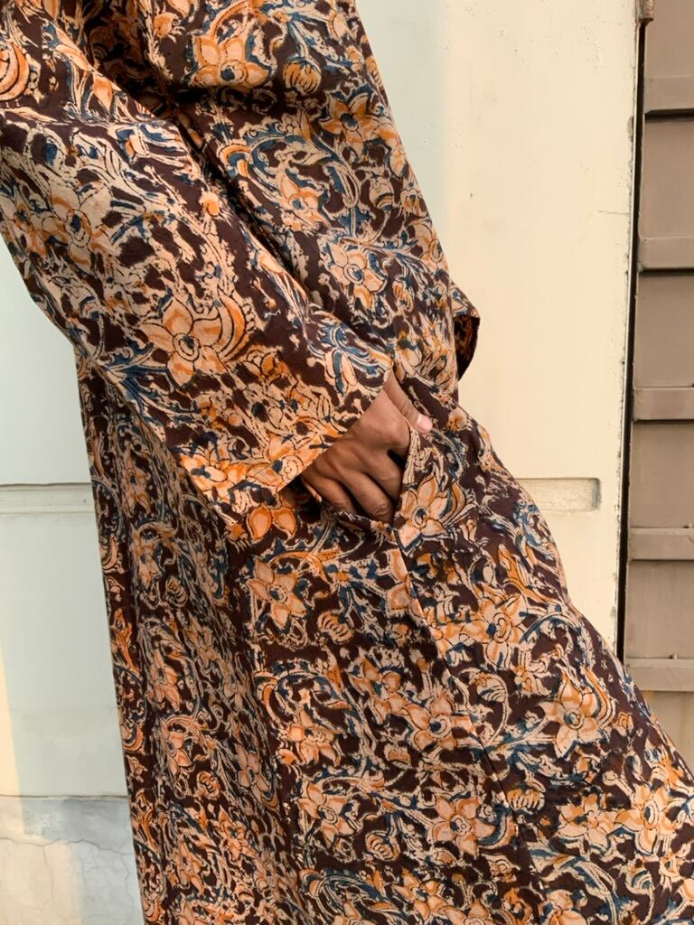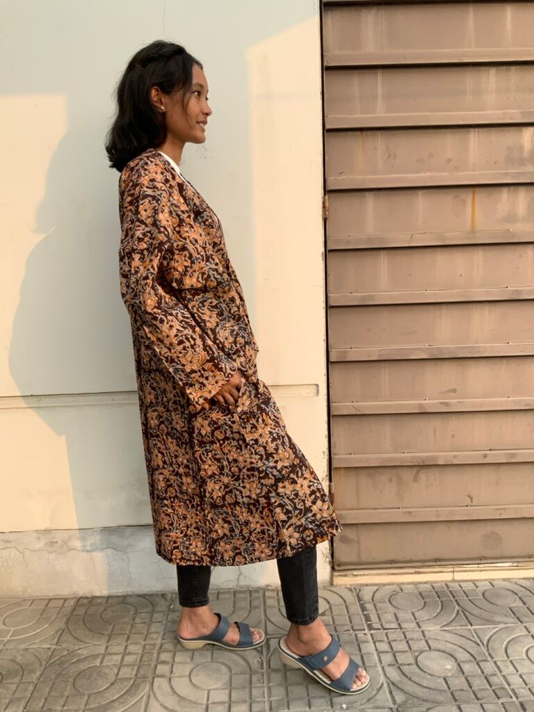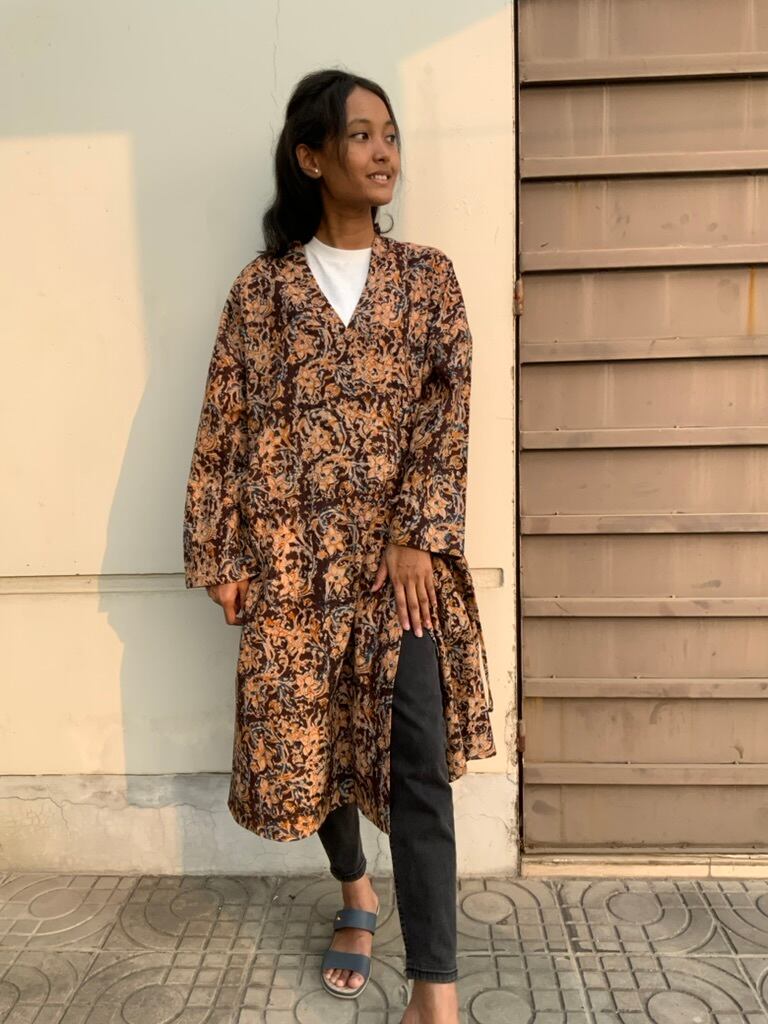 インドのハンドブロックプリント(カラムカリ)を使った羽織です。