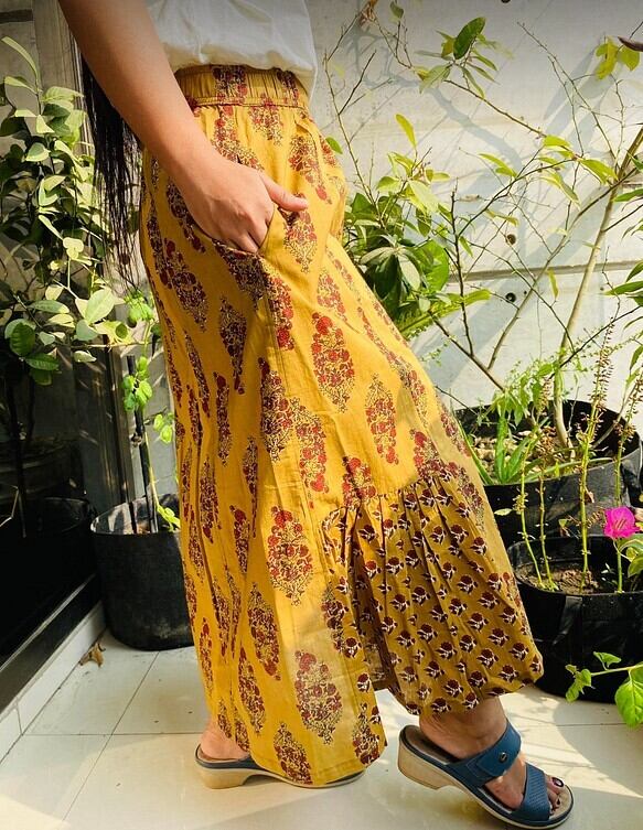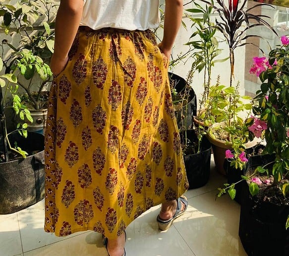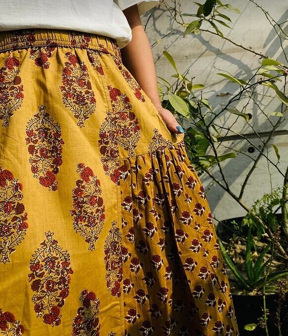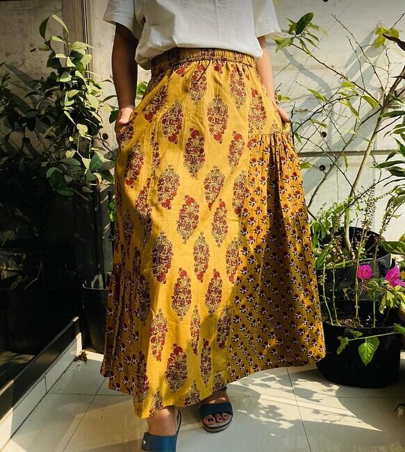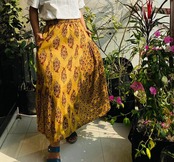 インド産のジョイプールコットン生地をたっぷり使い、ちょっと小洒落たマキシ丈のスカートを作りました。