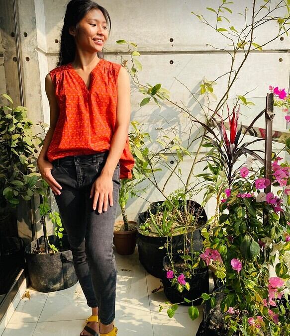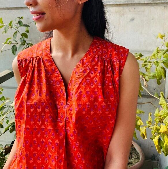 *弊社の取り扱っているインド綿は基本1ロール20M程度となっており、また多くの洋服が4-5M必要とするようなギャザーやタックが入っているもののため1つの柄布から4-5着しかお作りする事ができません。商品の販売を複数サイトで行っており、在庫の更新が間に合わなく同じタイミングで布の在庫以上の商品の購入を受けてしまう事があったり、布に落ちないシミが見つかったりして商品の縫製が出来ない事がございます。