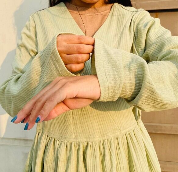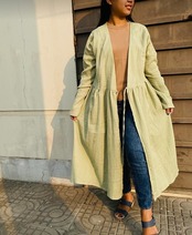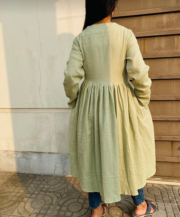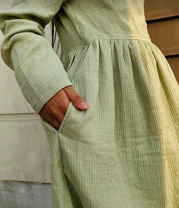 ワンピースとしても、羽織としてもどちらにもご使用いただけます。冬の間は中にタートルネックを入れて、夏はタンクトップの上にさらりと羽織っていただける商品です。