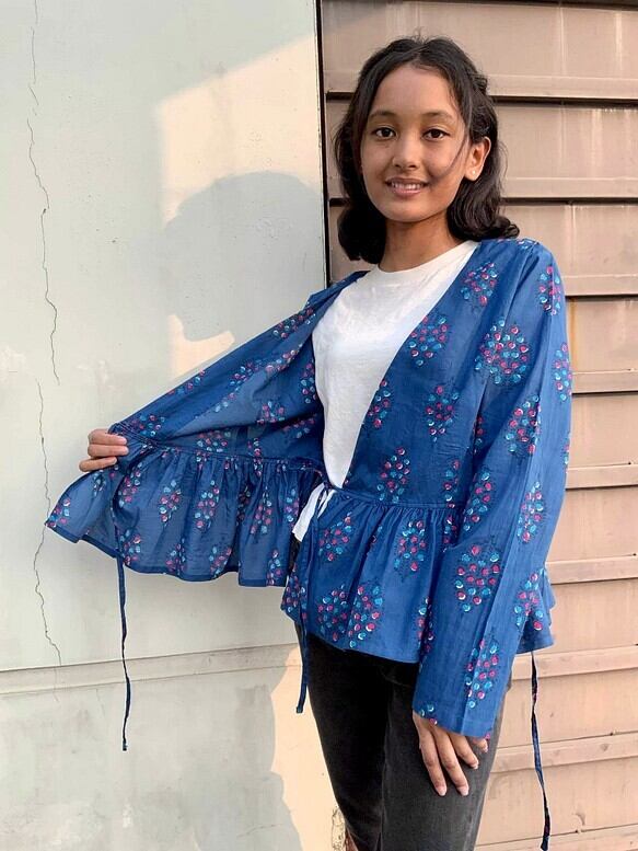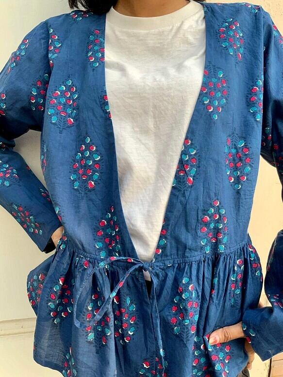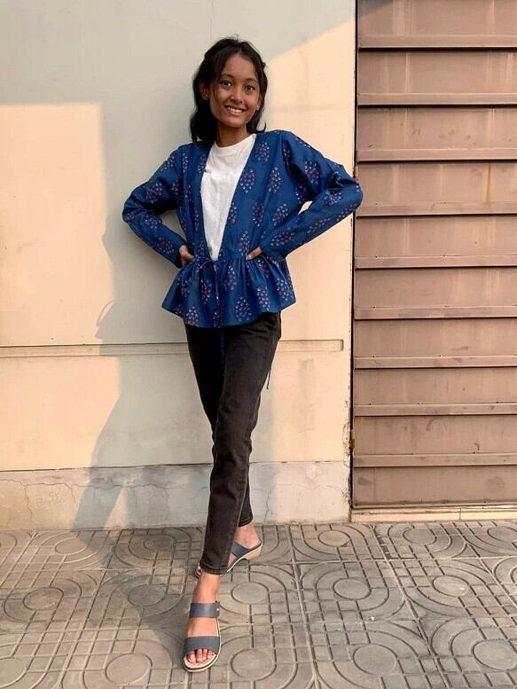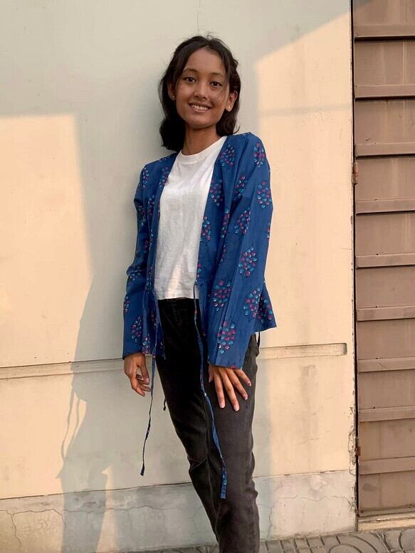 バングラデシュ の、働く人たちの必需品、ガムチャ(手拭い)生地を使った羽織です。(生地は薄手で透けます)
