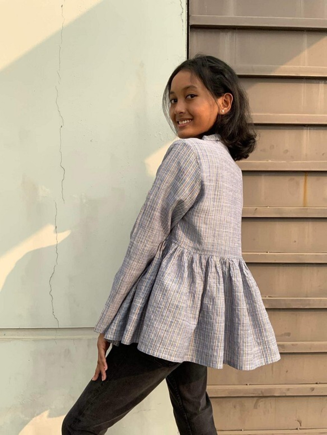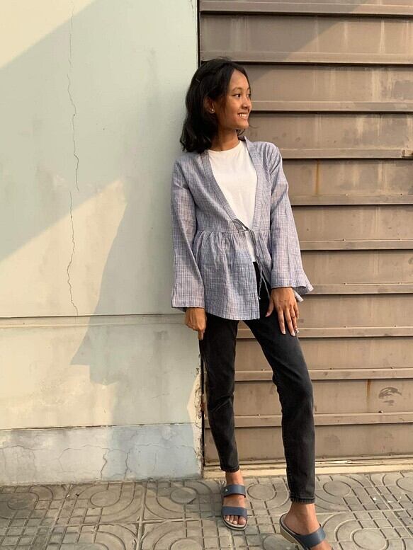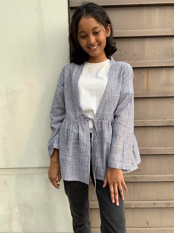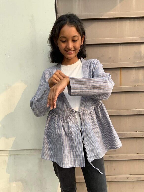 インド産のストライプ柄コットン生地生地生地を使った羽織です。(生地は薄手で透けます)