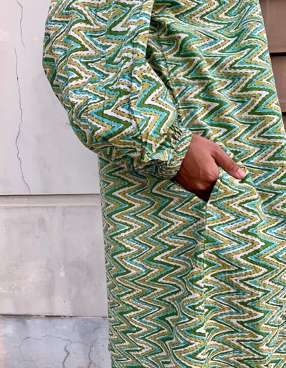 北インドジョイプール地方で作られたインド綿を利用した100%コットンの着心地の良いワンピースです。