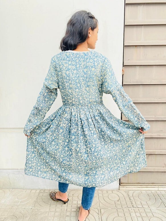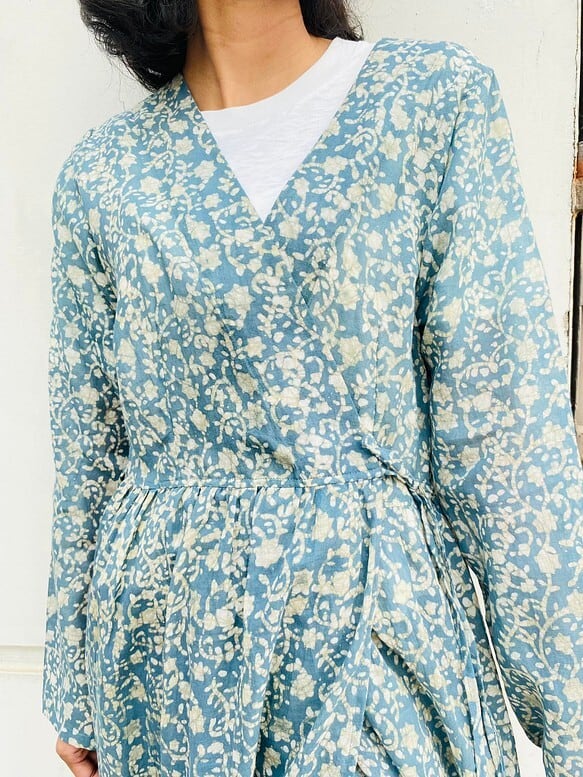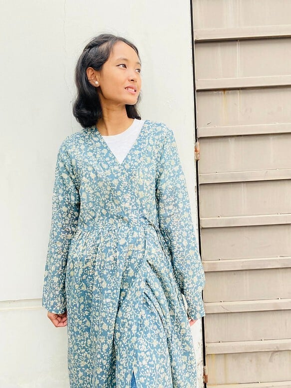 手染め草木染コットン使用カシュクールワンピース(羽織)