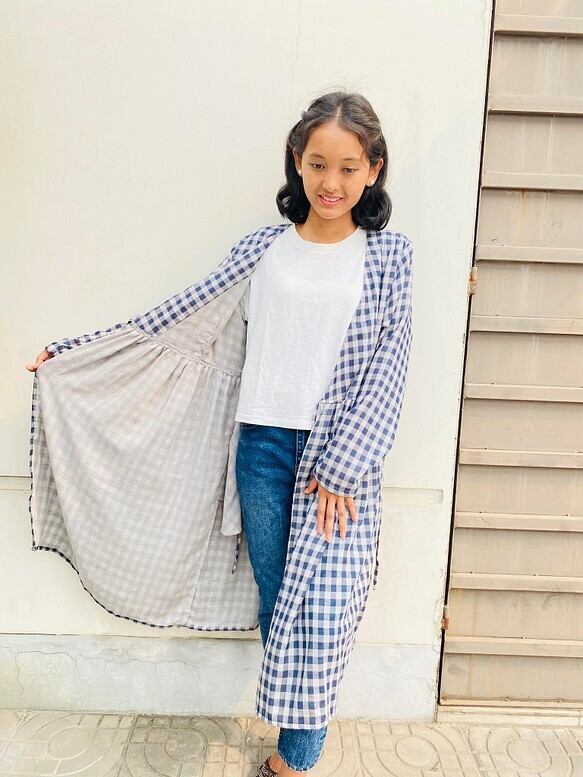 ダブルガーゼを利用して作った羽織です。(とっても薄いので透けます。ワンピースとしてご着用の際はインナーワンピースを着用いただく必要がございます。)