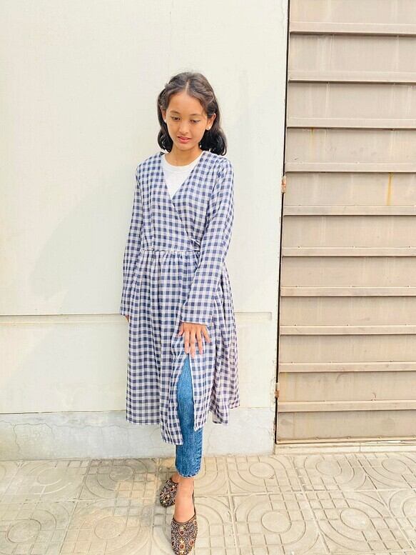 ワンピースとしても、羽織としてもどちらにもご使用いただけます。冬の間は中にタートルネックを入れて、夏はタンクトップの上にさらりと羽織っていただける商品です。