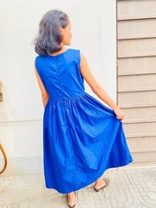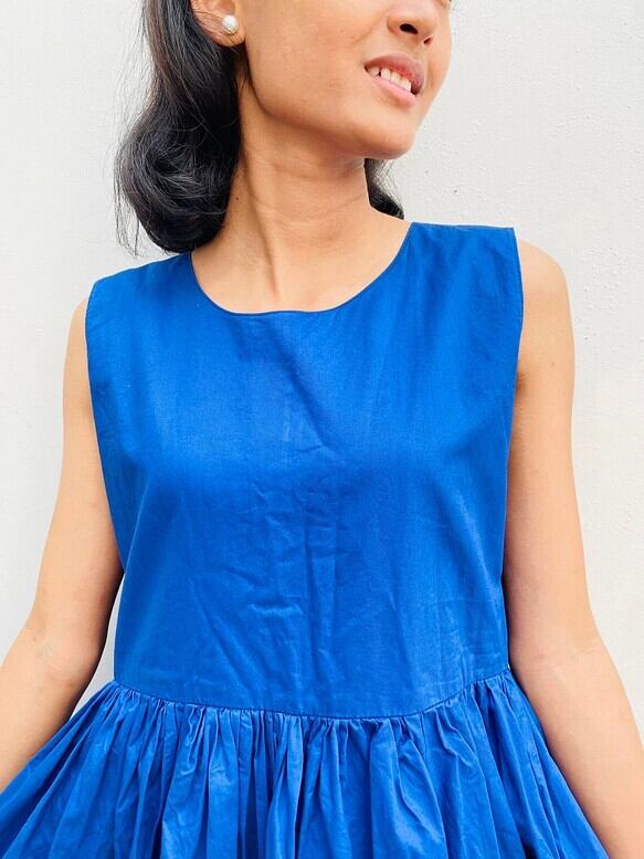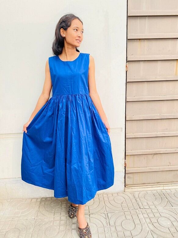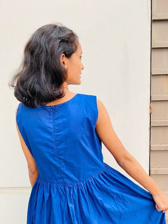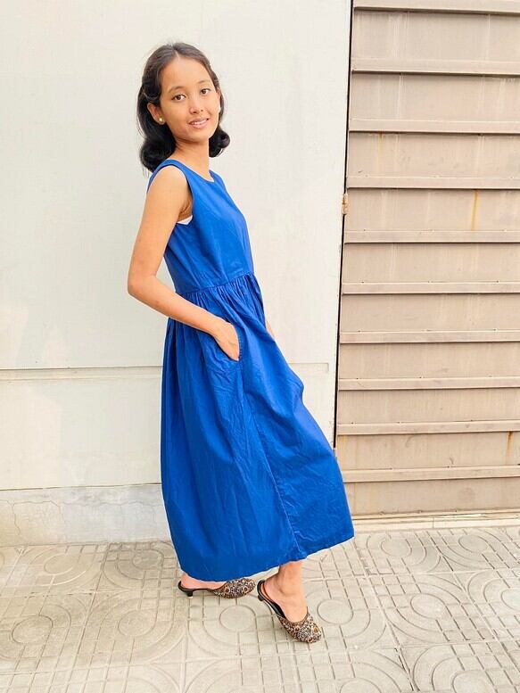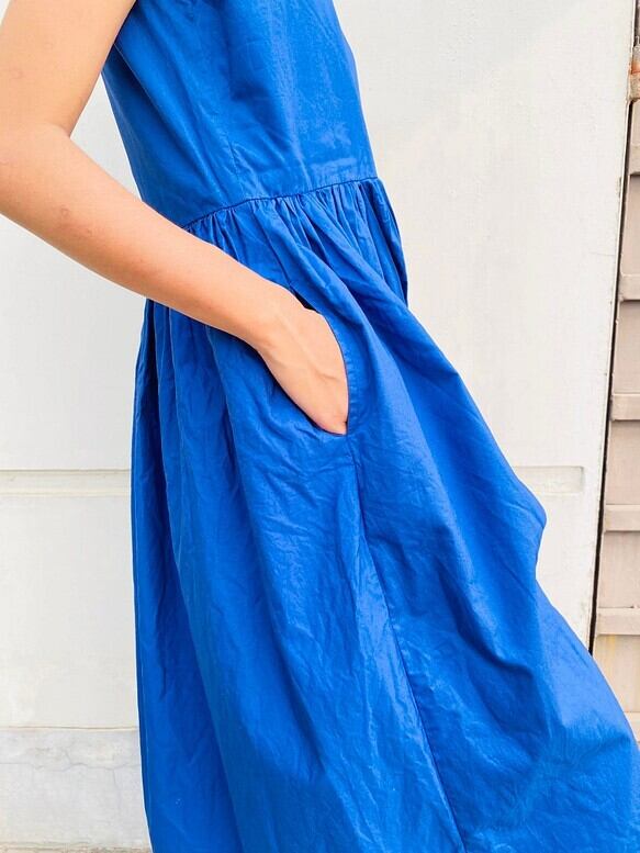 ハイカウントコットン(糸を通常のコットン以上に細かく紡ぐことにより綿なのですが艶感が特徴のコットンです)使ったワンピースです。