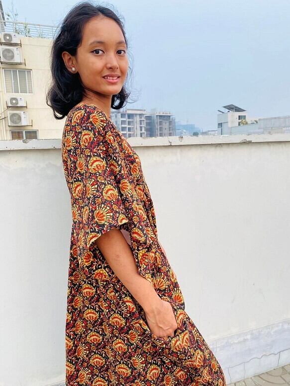 ゆとりのあるデザインですが、着ていただくとスッキリ見えます。