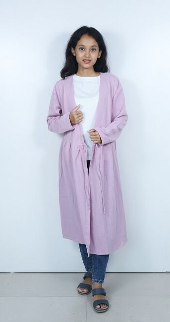 ワンピースとしても、羽織としてもどちらにもご使用いただけます。冬の間は中にタートルネックを入れて、夏はタンクトップの上にさらりと羽織っていただける商品です。