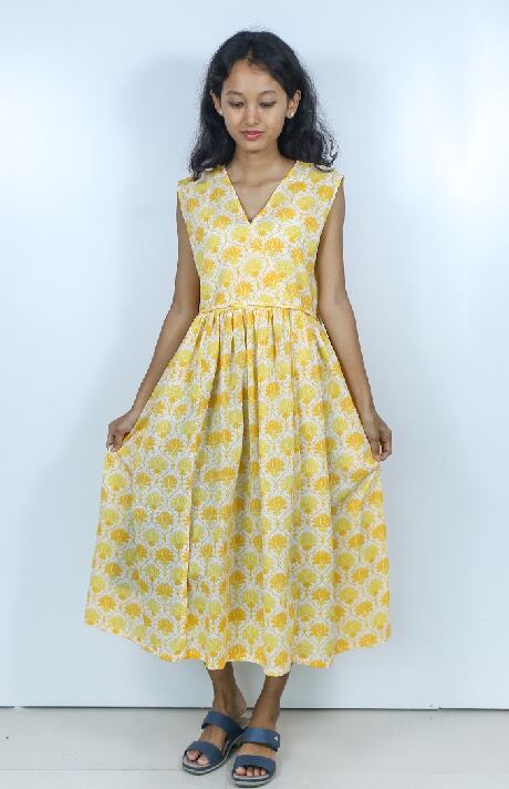 羽織としてのカシュクールワンピースではなく前部分を固定し、はだける心配のない歌手クールワンピースを作りました。