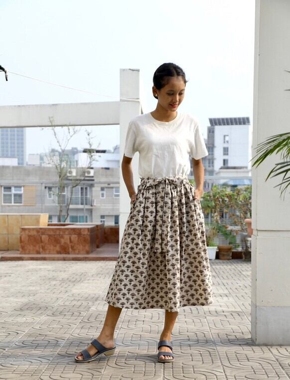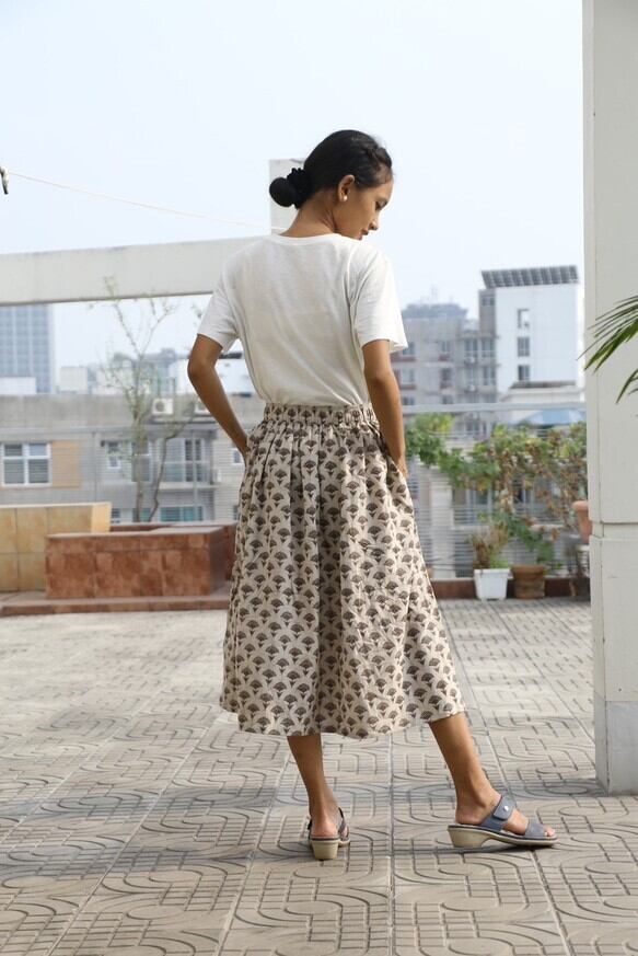 インドのハンドプリントを利用してお作りしました、リボンスカートです。