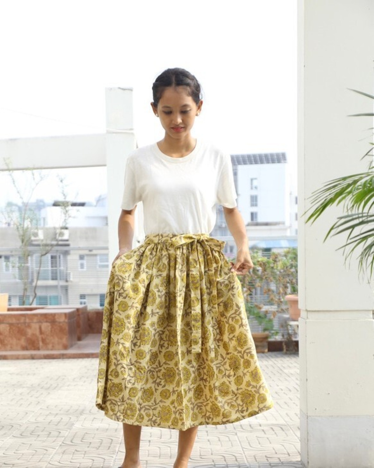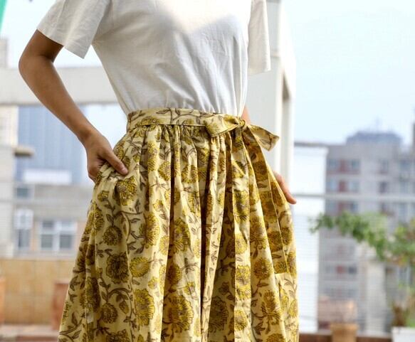 インドのハンドプリントを利用してお作りしました、リボンスカートです。