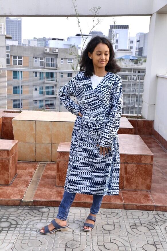 ハンドブロックプリント使用カシュクールワンピース(羽織)