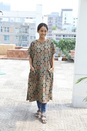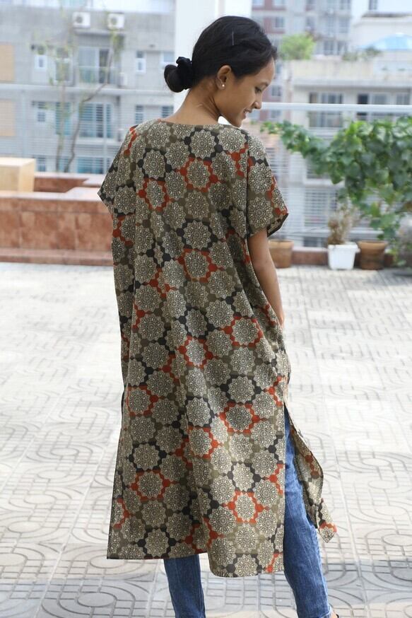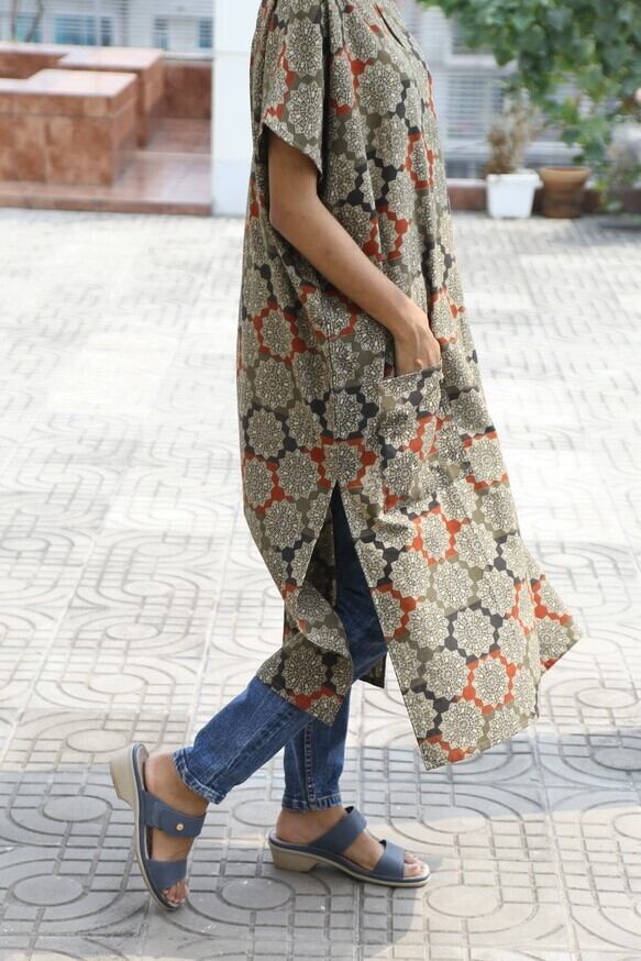 インド綿(カラムカリという手仕事でつくられた布になります)でトルコの民族衣装であるカフタンを日本の日常でも着やすいようにアレンジしました。