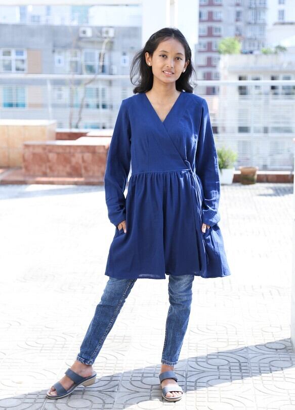 ワンピースとしても、羽織としてもどちらにもご使用いただけます。冬の間は中にタートルネックを入れて、夏はタンクトップの上にさらりと羽織っていただける商品です。