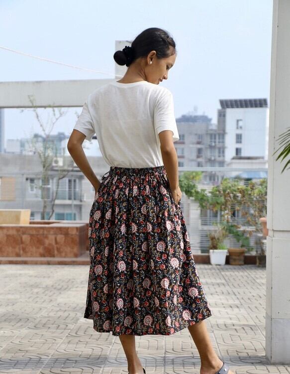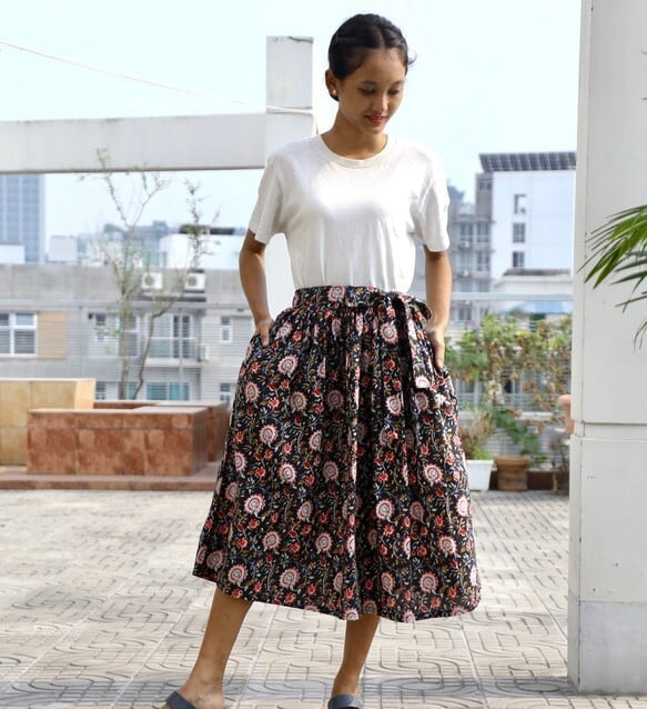 インドのハンドプリントを利用してお作りしました、リボンスカートです。