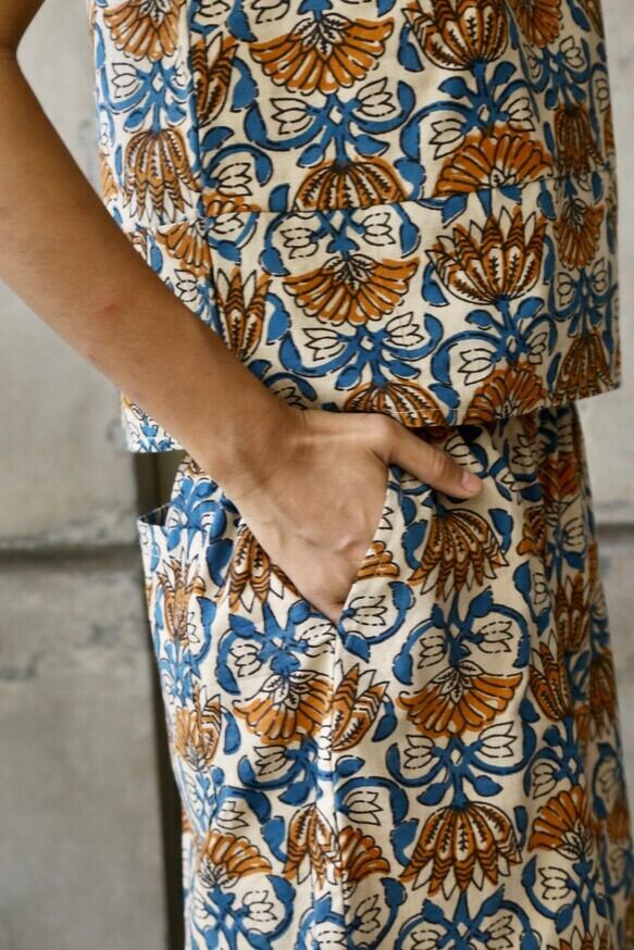 インドのカラムカリという伝統技法を用いた手仕事の布をインドから直接仕入れ使っています。