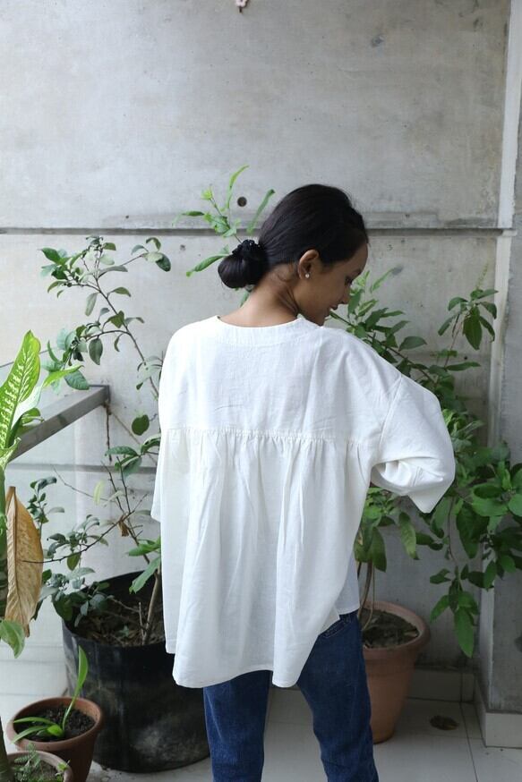 *弊社の取り扱っているインド綿は基本1ロール20M程度となっており、また多くの洋服が4-5M必要とするようなギャザーやタックが入っているもののため1つの柄布から4-5着しかお作りする事ができません。商品の販売を複数サイトで行っており、在庫の更新が間に合わなく同じタイミングで布の在庫以上の商品の購入を受けてしまう事があったり、布に落ちないシミが見つかったりして商品の縫製が出来ない事がございます。