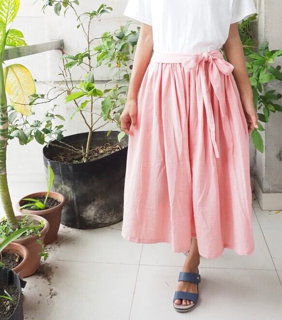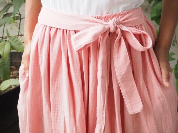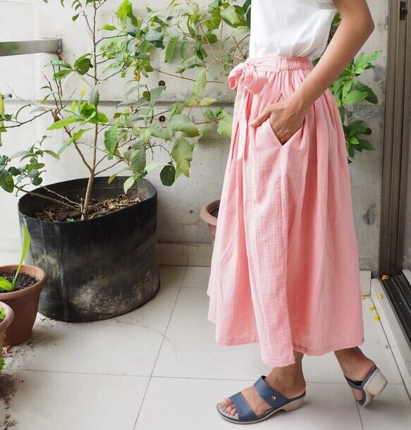 コットンですが近所を出歩くスカートではなくお出かけにも使っていただけるスカートに仕上げました。使い勝手も考えサイドにポケット付きです。