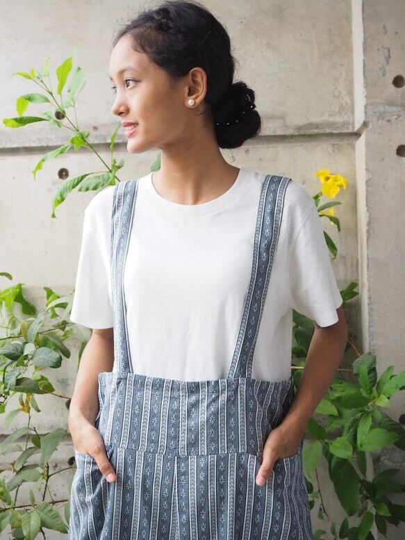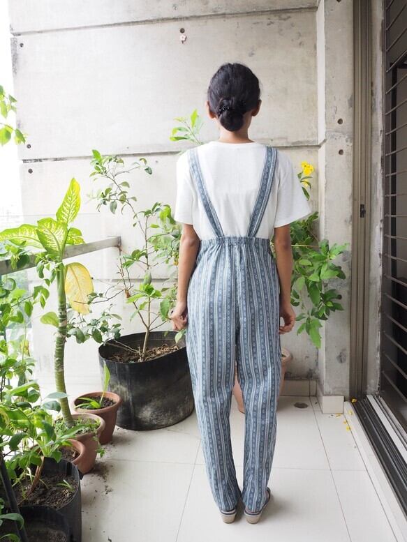 後ろ見頃にゴムを通しているため、サスペンダーに全てのパンツの重みがかからないように設計しました。