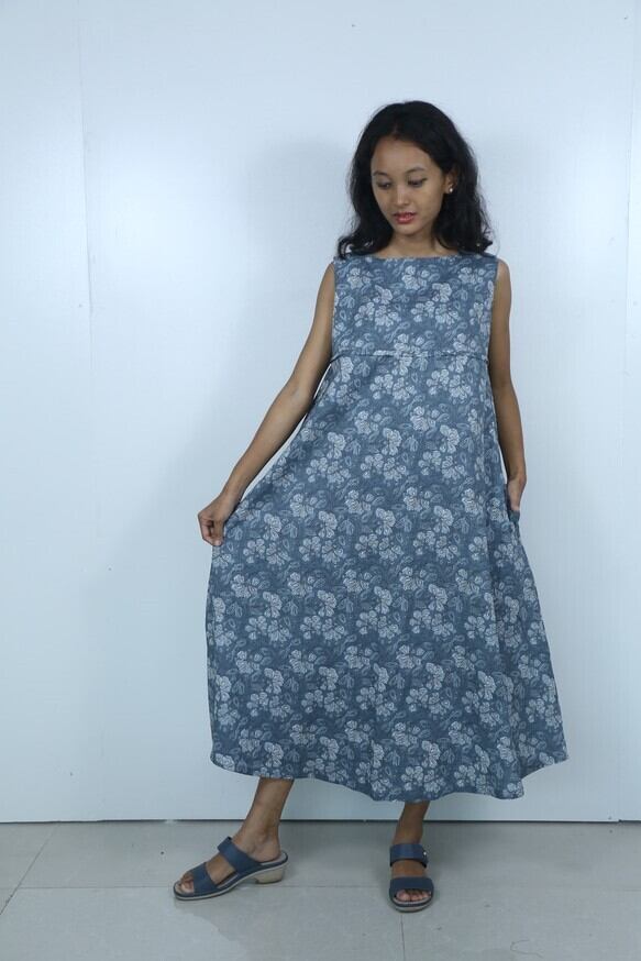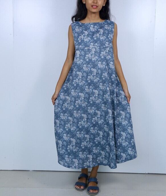 インド綿/Aラインワンピース/マキシ丈