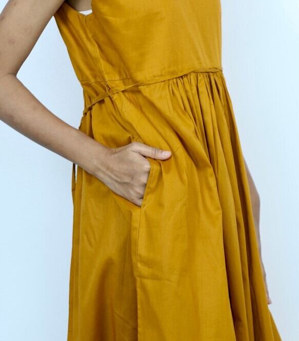 ギャザーワンピース(コットン100%)