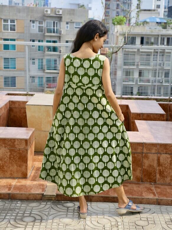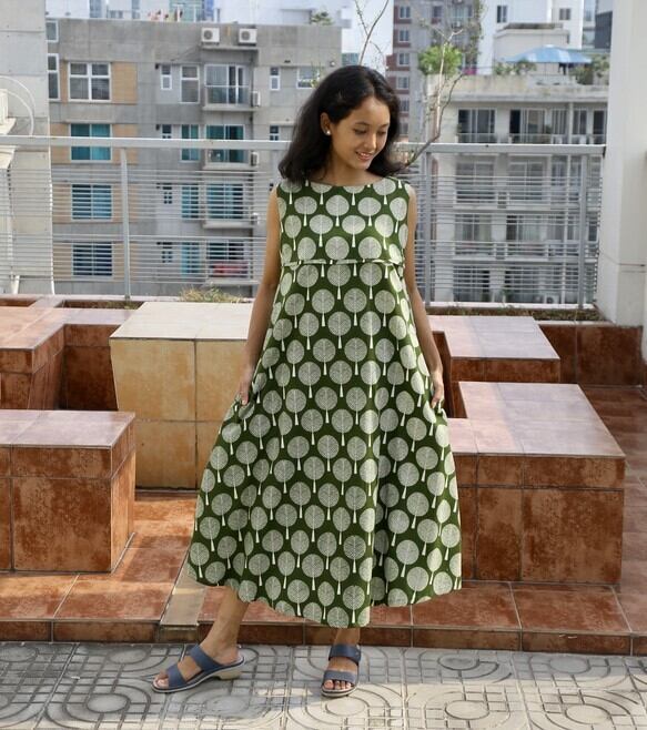 綿100%/Aラインワンピース/マキシ丈