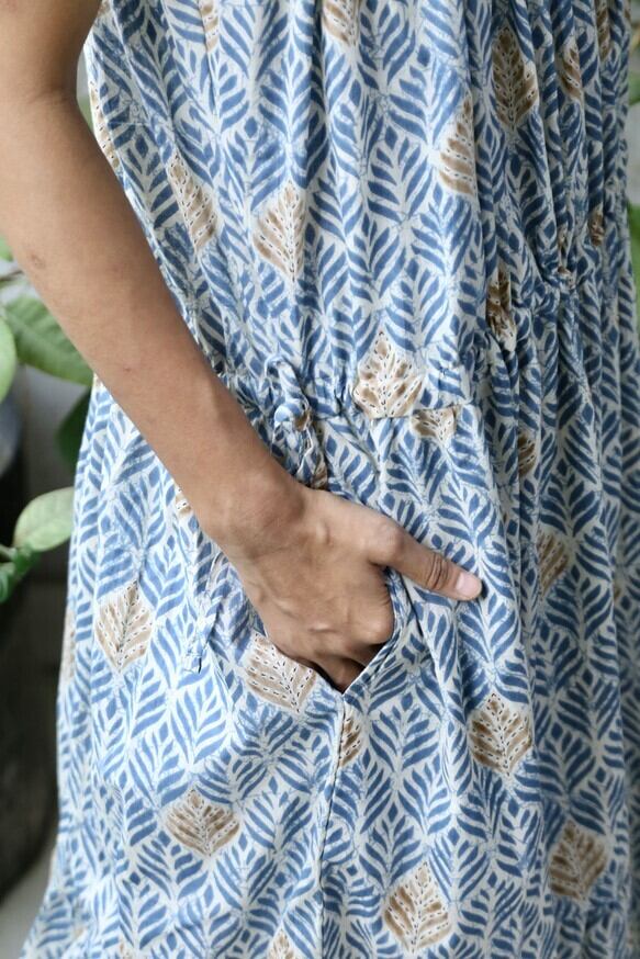 涼しげな柄のインド綿でお作りしましたワンピースです。