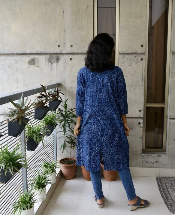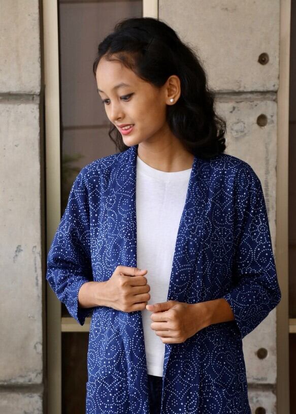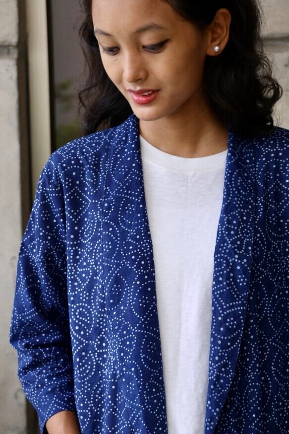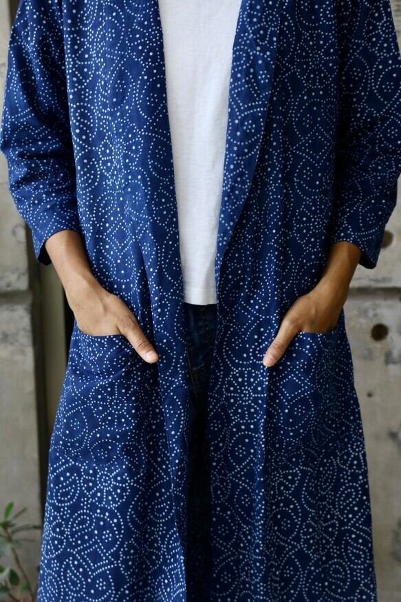 7部袖ジャケットガウン(手染め藍染)