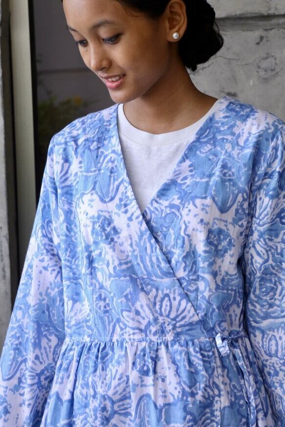 ハンドブロックプリント使用カシュクールワンピース(羽織)