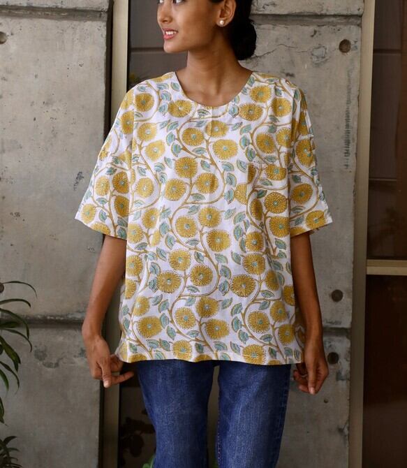 オーバーサイズTシャツシャツ(ハンドブロックプリント)