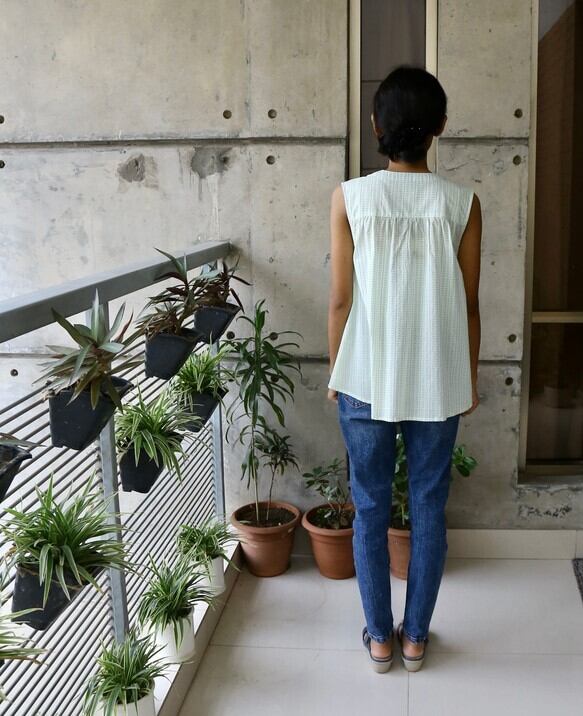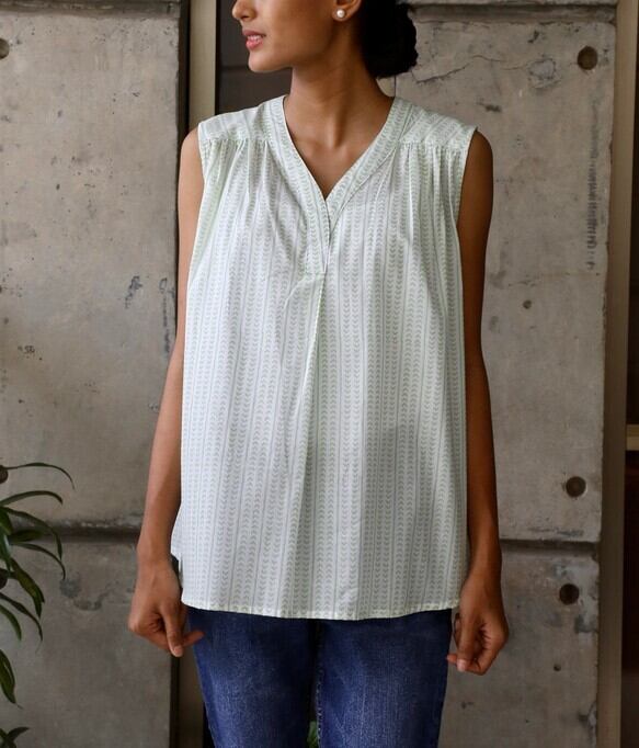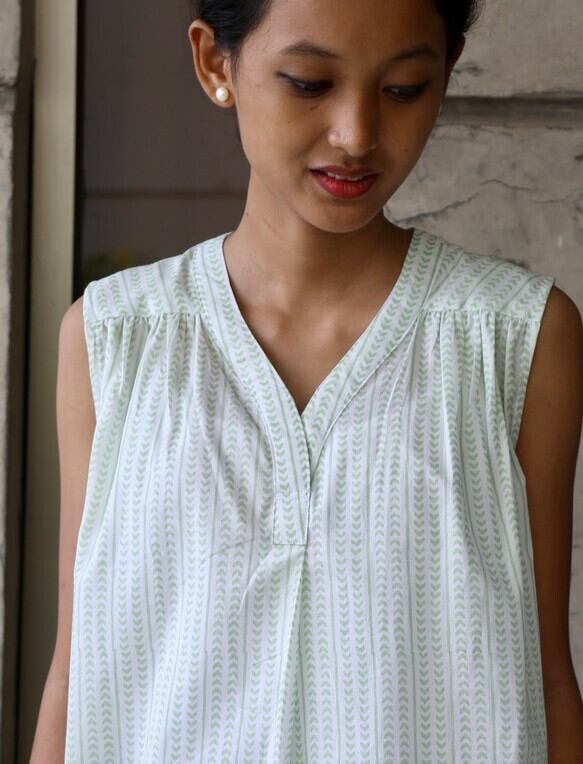 ハンドメイド/ノースリーブトップス(ハンドブロックプリント)