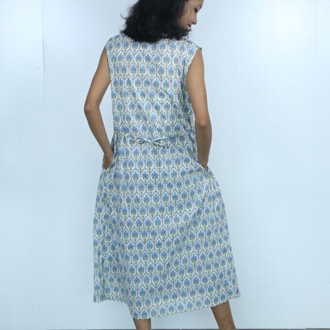 インド綿カシュクールノースリーブワンピース
