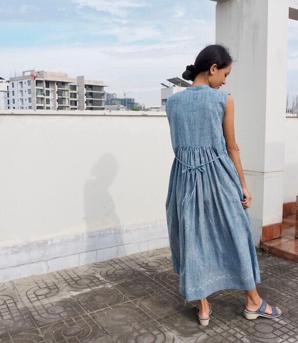 シルクのような滑らかさを持つハイカウントコットンを使ったギャザーワンピースです。