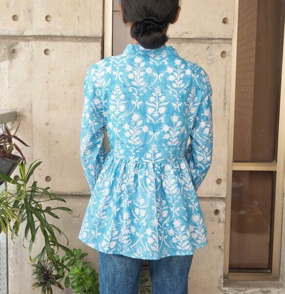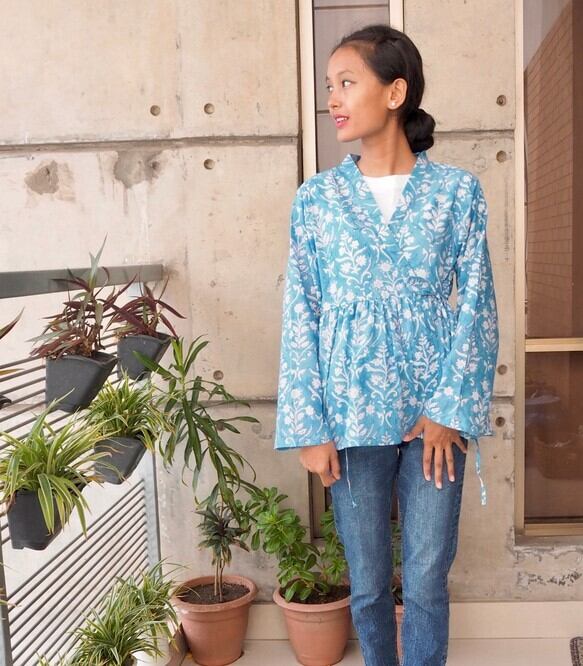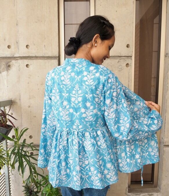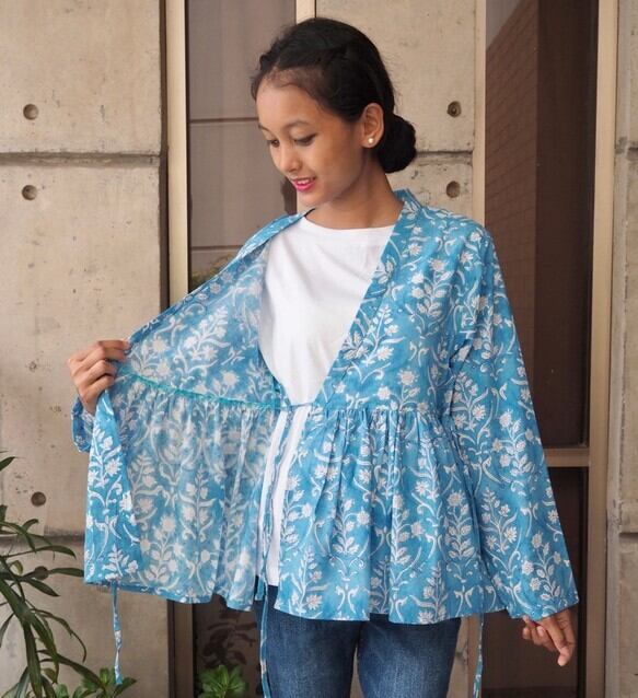 インドの手仕事ハンドブロックプリント生地を使った羽織です。(生地は薄手で透けます)