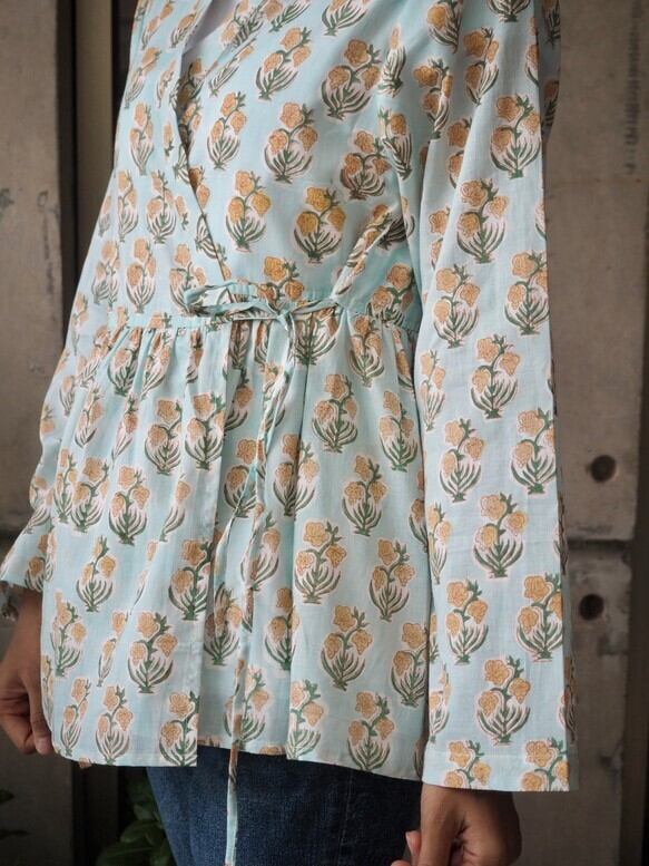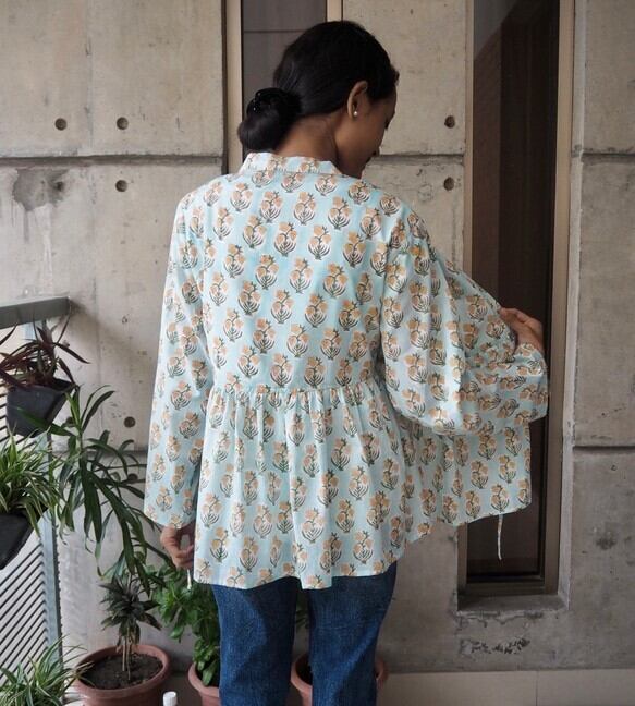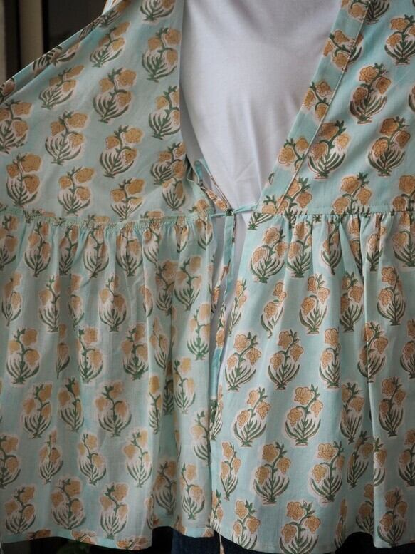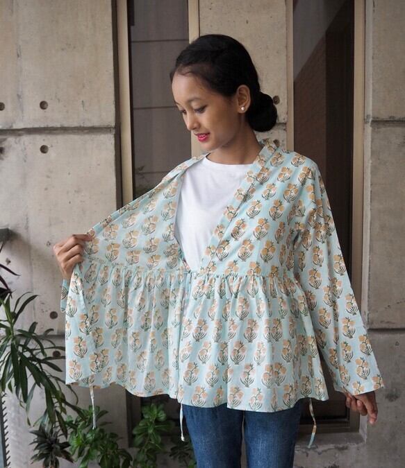 インドの手仕事ハンドブロックプリント生地を使った羽織です。(生地は薄手で透けます)